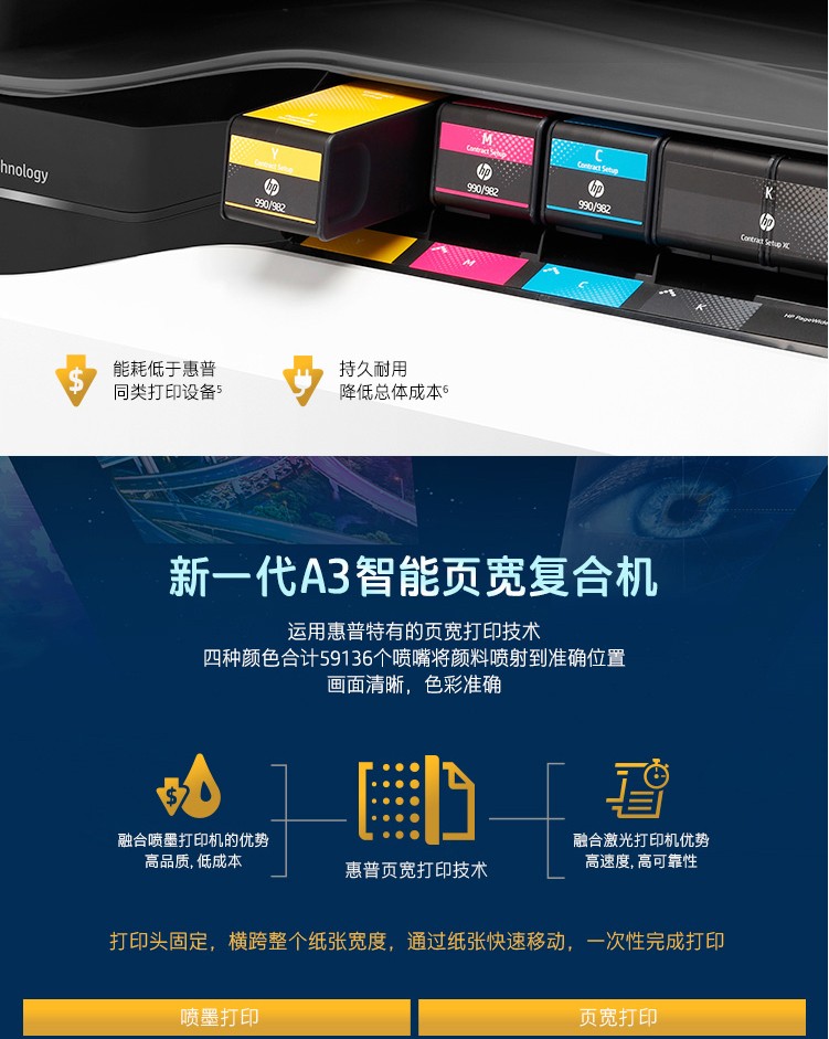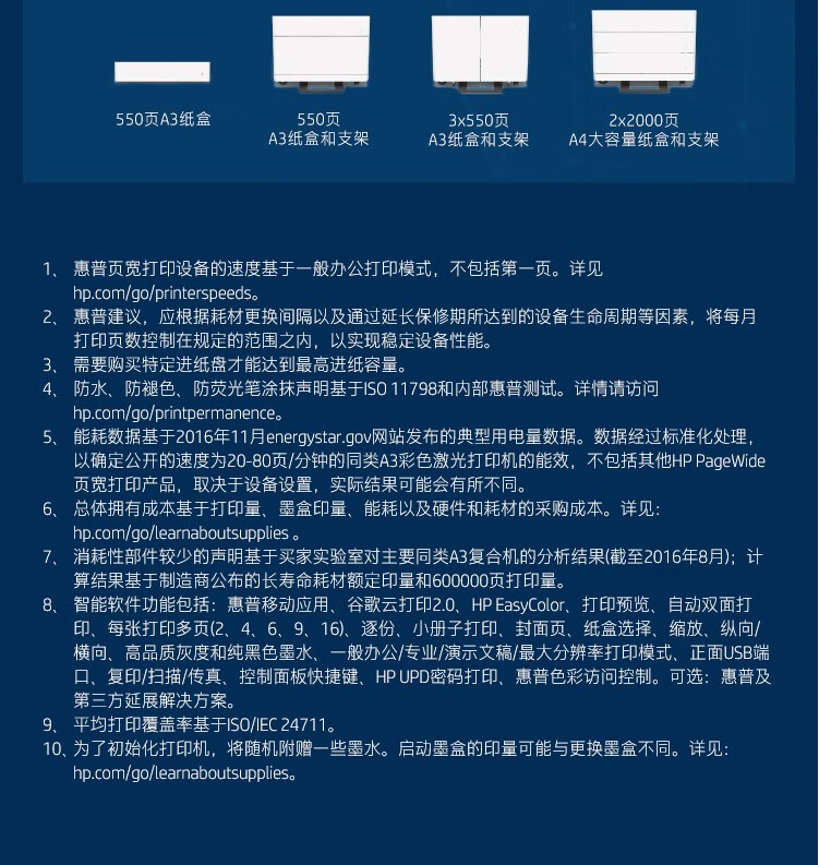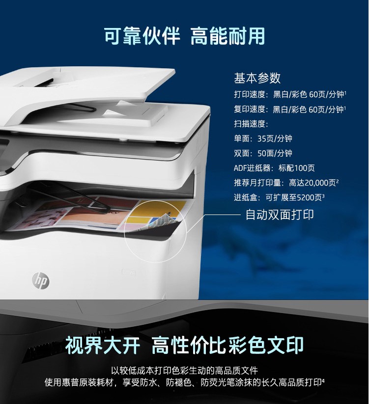 惠普/HP P77440dn A3 彩色打印機 管理型彩色頁寬復合 標配