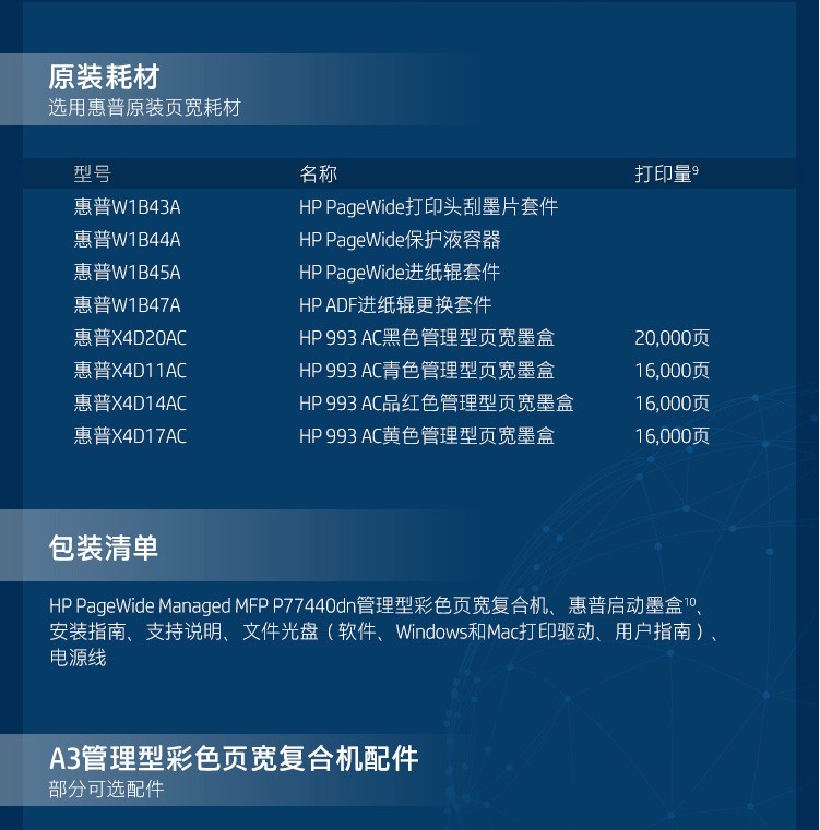 惠普 HP PageWide Managed Color MFP P77440dn管理型彩色頁寬復合 標配