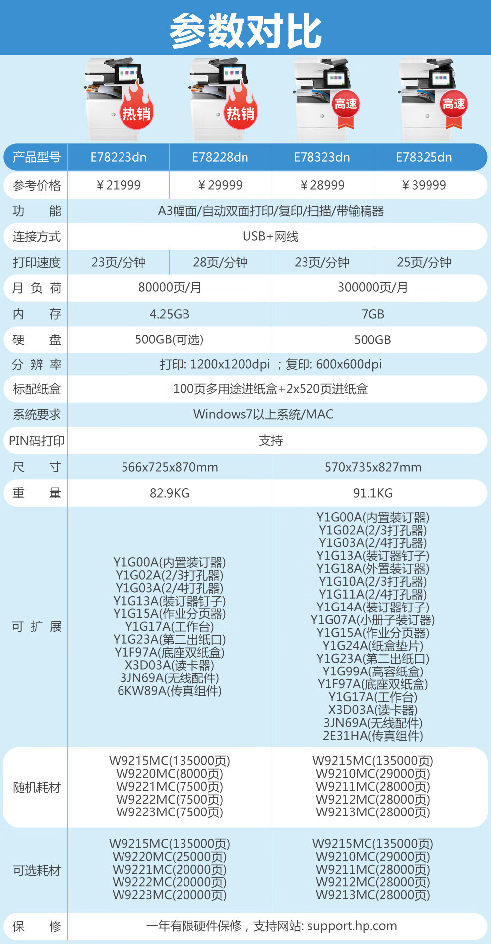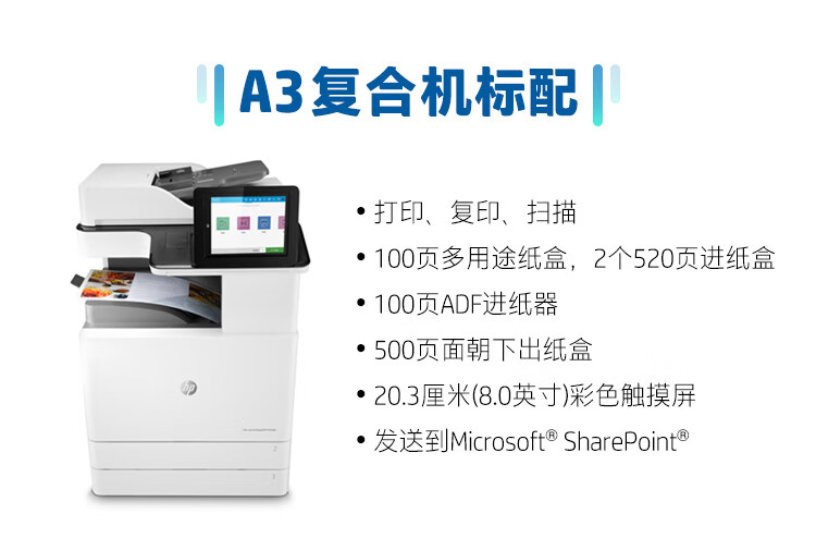 惠普(HP)A3激光復(fù)合機(jī)打印機(jī)辦公商用大型一體機(jī)復(fù)印機(jī)掃描機(jī) A3黑白 E82550z(50頁(yè)/分鐘) 官方標(biāo)配