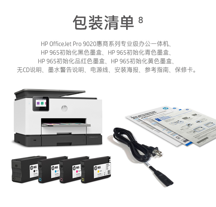 惠普 (HP) OJP 9020商用噴墨彩色無(wú)線多功能一體機(jī)四合一 打印復(fù)印掃描傳真 自動(dòng)雙掃雙打 8720升級(jí)款