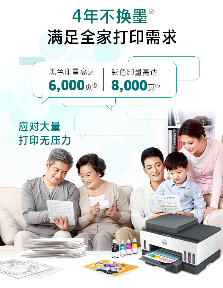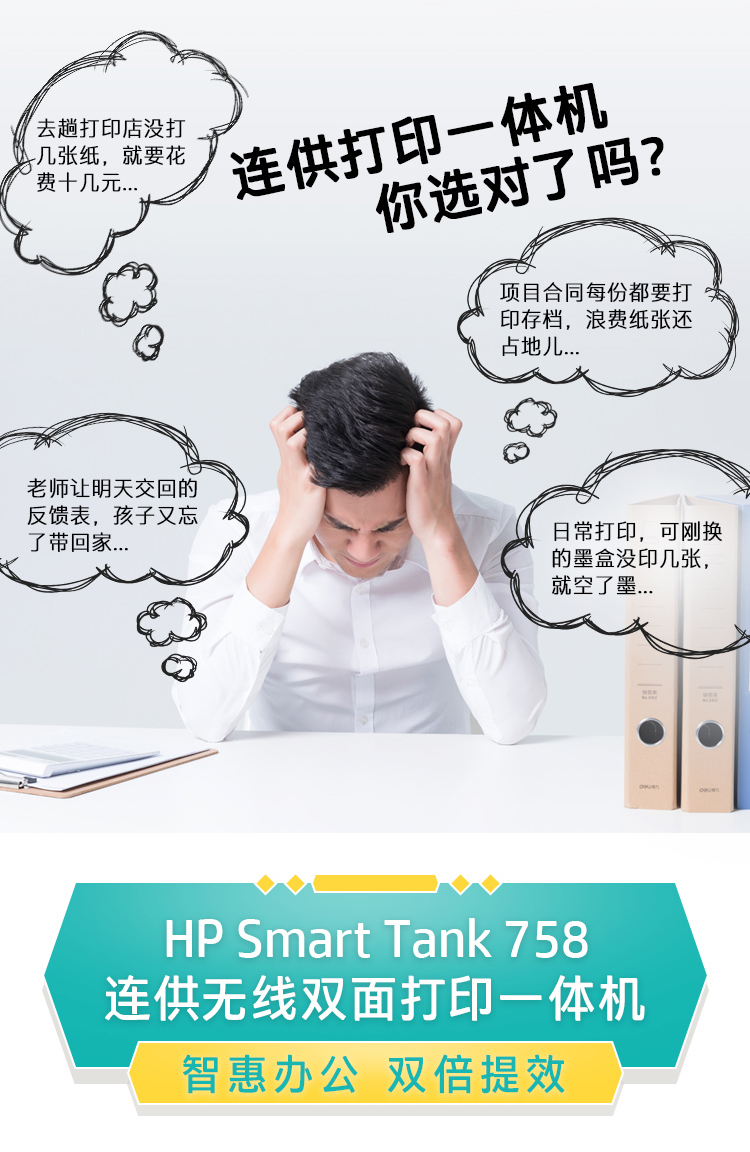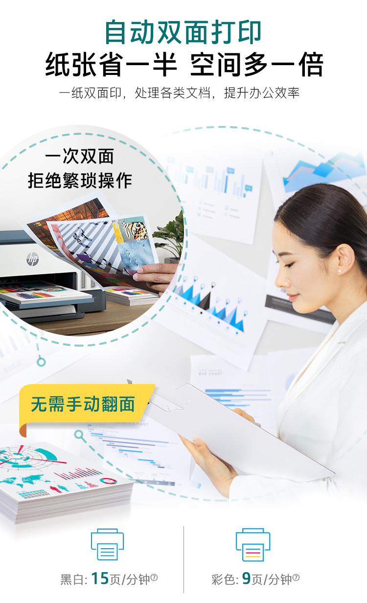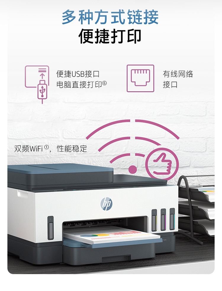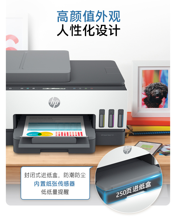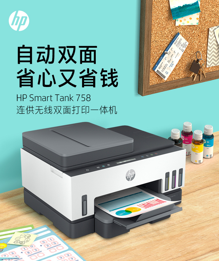惠普(HP)758 連供無線自動(dòng)雙面打印機(jī) 三合一彩色打印復(fù)印掃描 家庭打印商用辦公內(nèi)置墨倉單頁成本1分錢