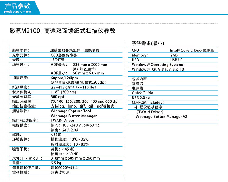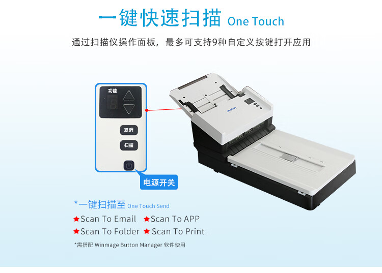 影源/WinMage M2100+ 掃描儀 彩色A4幅面ADF+平板式雙平臺掃描儀 饋紙速度60ppm/120ipm 掃描元器件CCD,ADF加平板一體機