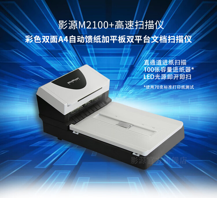 影源掃描儀M2100+彩色A4幅面ADF+平板式雙平臺掃描儀 饋紙速度60ppm/120ipm 掃描元器件CCD,ADF加平板一體機
