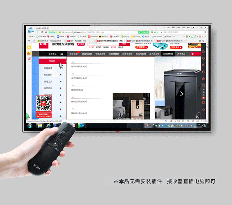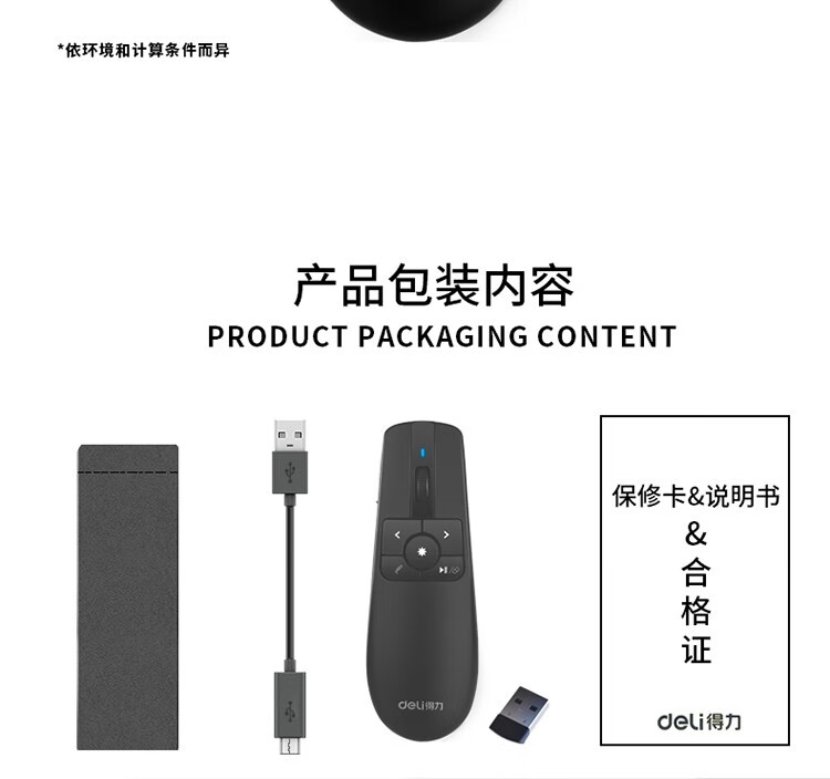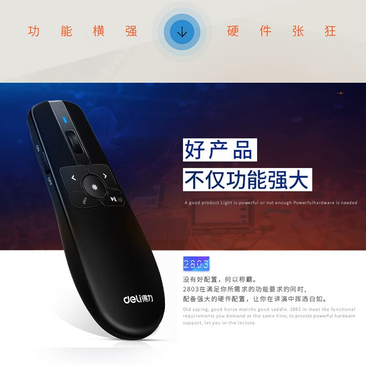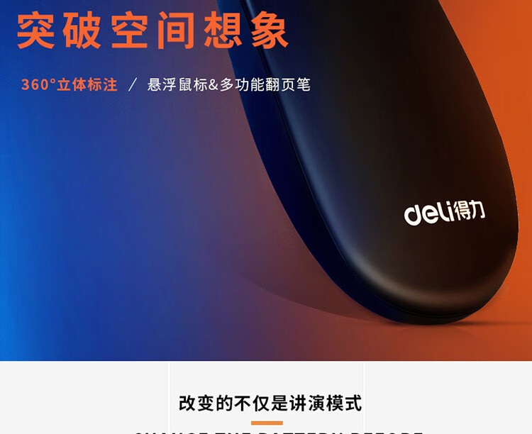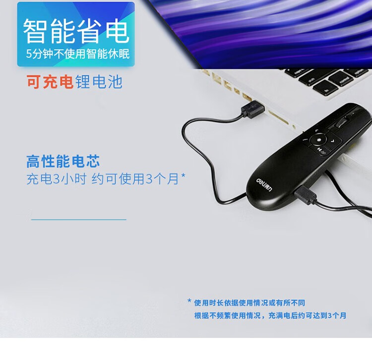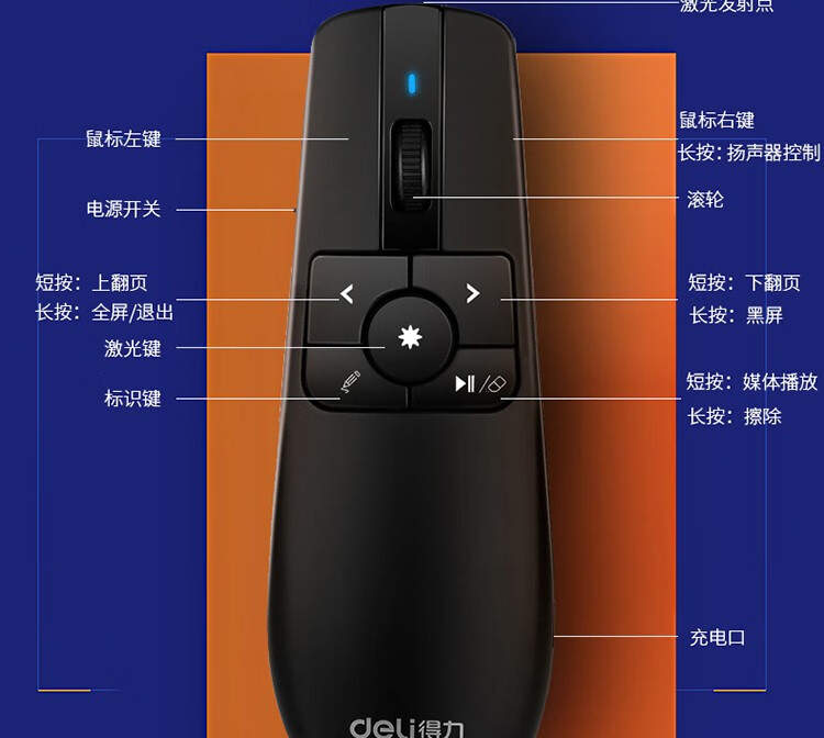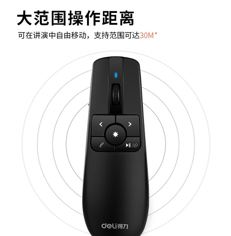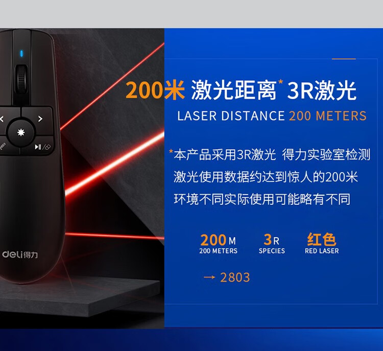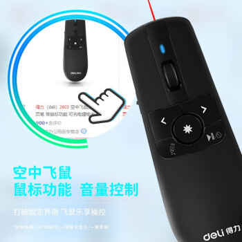 得力(deli) 空中鼠標飛鼠 可充電液晶屏激光筆 教鞭 PPT無線演講演示器翻頁器 幻燈片遙控器翻 紅光 2803