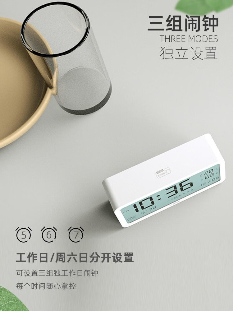 得力(deli) 多功能電子鬧鐘學(xué)生用臥室床頭簡(jiǎn)約智能溫濕度計(jì)桌面夜光靜音數(shù)字智能時(shí)鐘表 大號(hào)白色【192*88*50mm】8827