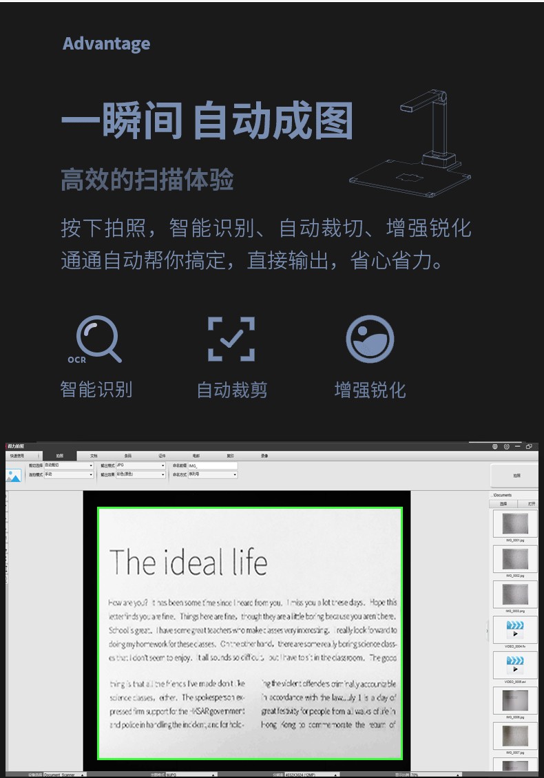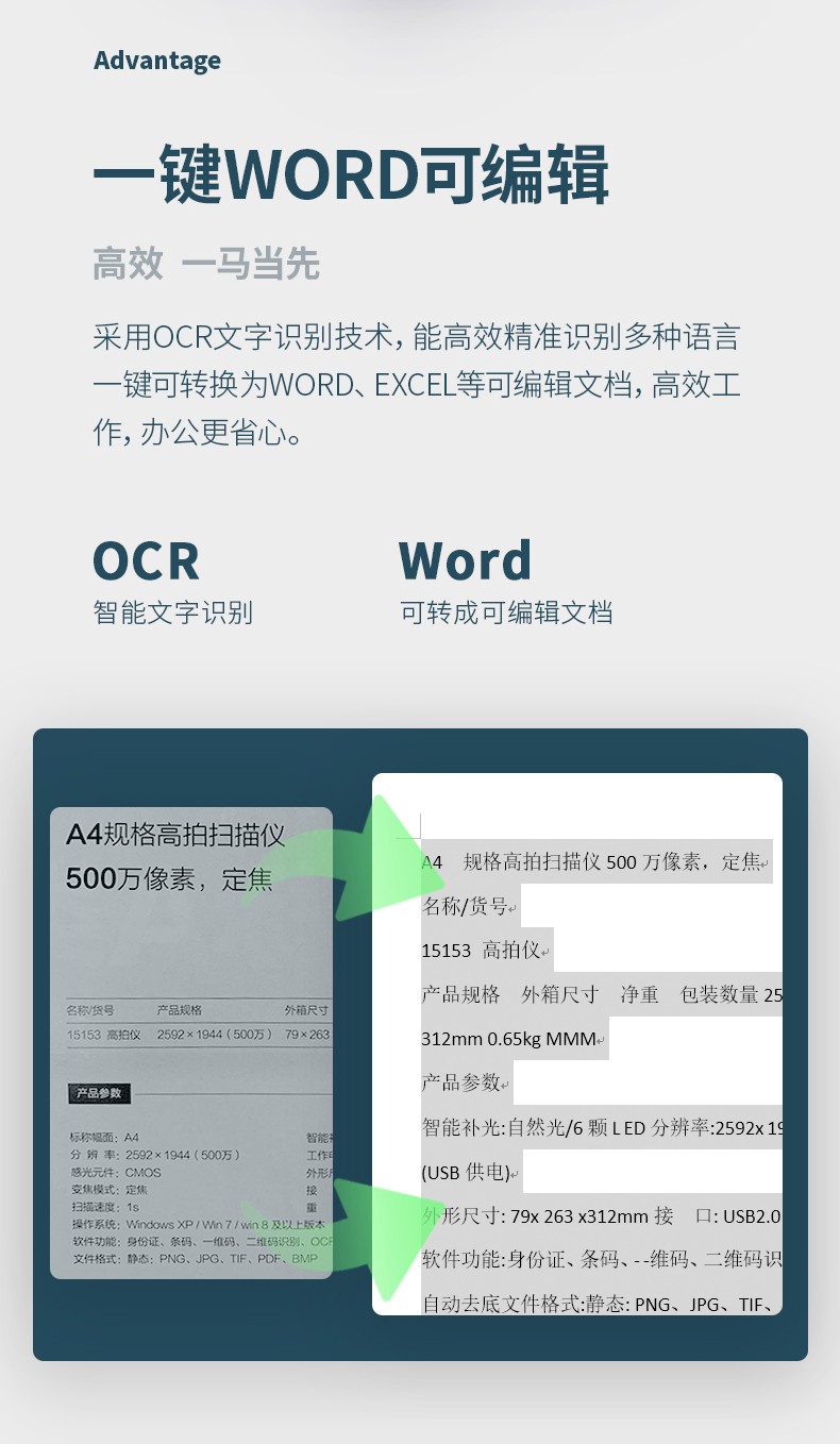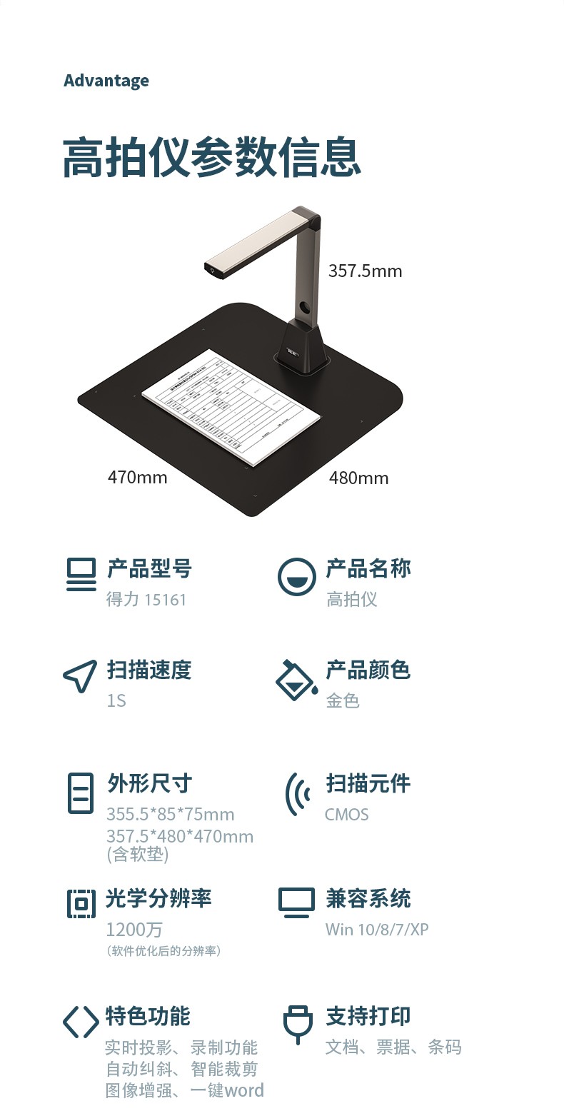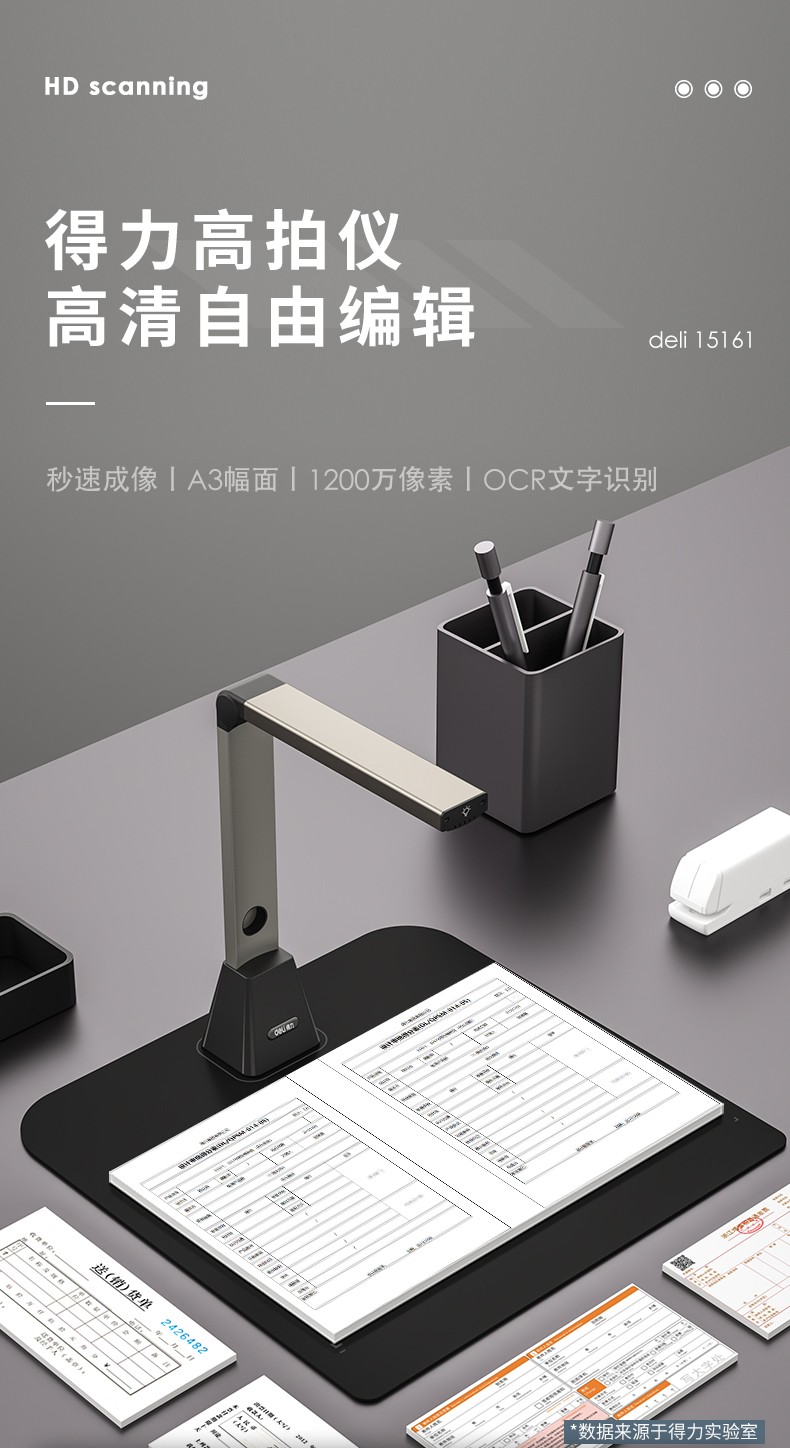 得力/deli 15161 高拍儀 智能高拍儀A3高清高速掃描儀1200萬像素 商用辦公文件文檔試卷資料 自動對焦掃描儀