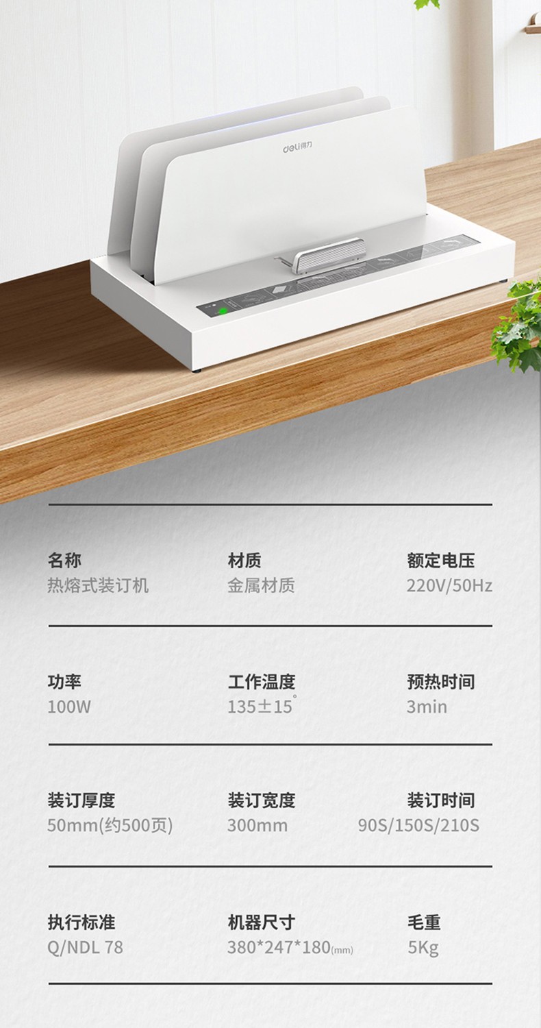 得力(deli) 熱熔裝訂機(jī)合同財(cái)務(wù)會(huì)計(jì)憑證裝訂機(jī)封套膠裝機(jī)全自動(dòng)標(biāo)書 14671熱熔裝訂機(jī)(裝訂厚度40mm)