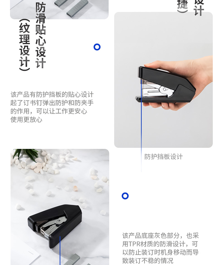 得力/deli 0466 裝訂及打孔類 單指按壓省力訂書機/訂書器 適配12#訂書釘 可裝50枚釘 黑色(不含釘)