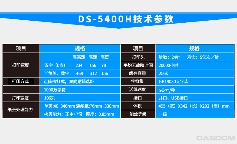 得實(shí)/DASCOM DS-5400H 票據(jù)打印機(jī) 高性能專業(yè)24針票據(jù)/證卡打印機(jī)支持國(guó)產(chǎn)麒麟統(tǒng)信系統(tǒng)