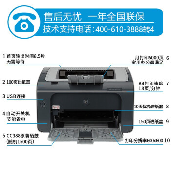 惠普(HP)P1106A4黑白激...